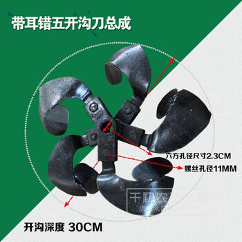农机微耕机配件23\26\32毫米开沟刀轴孔锰钢带耳刀片错五开沟培土刀总成 黑色27轴带耳错五开沟刀一对