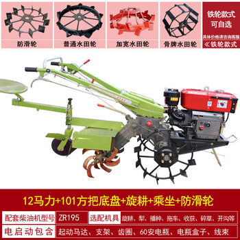 手扶拖拉机 8-18马力 沭河型 101-121底盘 农用旋耕机电启动开沟起垄耕田柴油农机可升级常柴 12马力ZR195+101方把底盘+旋耕+座+铁轮