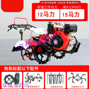 新式柴油四驱微耕机耕地机小型农用翻土打田耕犁田松土农机旋耕机 192柴油【电启动】【带转向款】