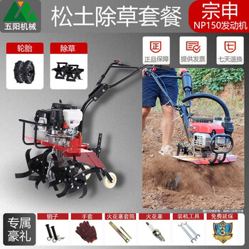 五阳 汽油微耕机锄地机松土机小型家用旋耕机耕田机开沟除草机农机 (高配)宗申NP150汽油+旋耕刀+轮胎+除草