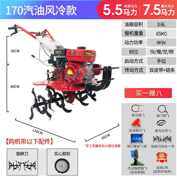 农百顺 微耕机农用机械柴油旋耕机农机耕地机小型多功能汽油耕田机除草开沟 170汽油风冷款+胶轮+旋耕刀