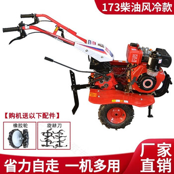 【闪电发货】微耕机农用机械柴油旋耕机农机耕地机小型多功能汽油耕田机除草开沟松土犁地新型手扶家用 173柴油风冷款+胶轮+旋耕刀