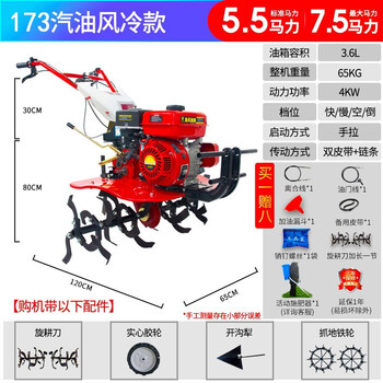 【闪电发货】微耕机农用机械柴油旋耕机农机耕地机小型多功能汽油耕田机除草开沟松土机犁地机新型手扶家用 173汽油风冷款+胶轮铁轮+旋耕刀+开沟犁