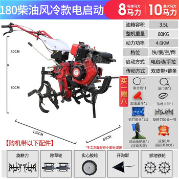 农百顺 微耕机农用机械柴油旋耕机农机耕地机小型多功能汽油耕田机除草开沟 【荐】180柴油风冷电启+胶铁轮+旋耕+除草+开沟