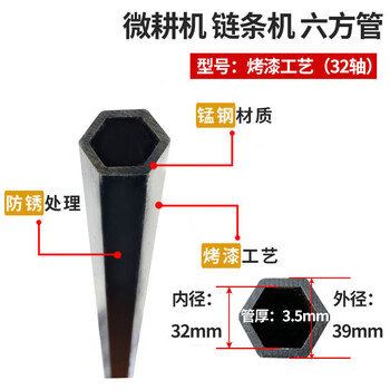 微耕机配件大全六方管六方轴六角轴23轴32轴农机旋耕机旱地刀零件麦桑荷 内径32mm外径39(无缝1米)防锈