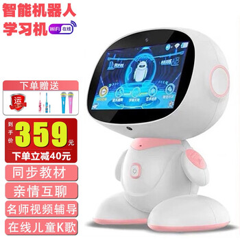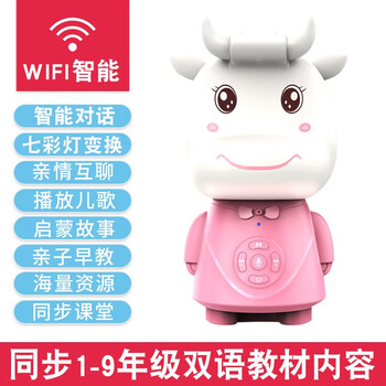 半兽人 WiFi智能机器人儿童早教机故事机语音互动聊天学习玩伴益智玩具学习机机器人微聊对话课程同步 好运牛WIFI绘本粉色